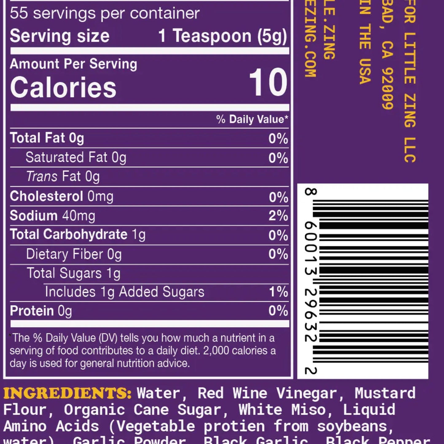 Black garlic and deep, umami-rich miso blend with Little Zing’s signature mustard kick to create a sauce that’s balanced, complex, and unforgettable. Crafted with real ingredients and no preservatives, it’s a drizzle-ready condiment designed to transform simple dishes into something crave-worthy.