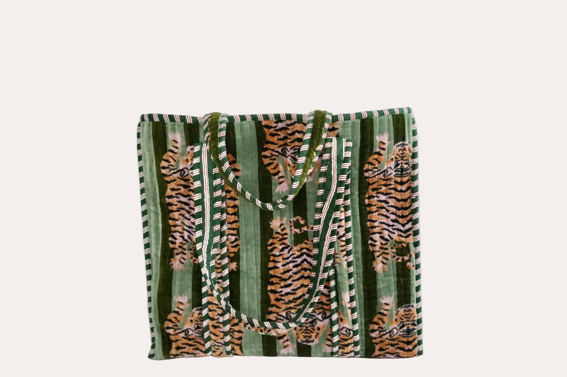 Sorella Sol - Large Dark Green Velvet Tiger Tote Bag